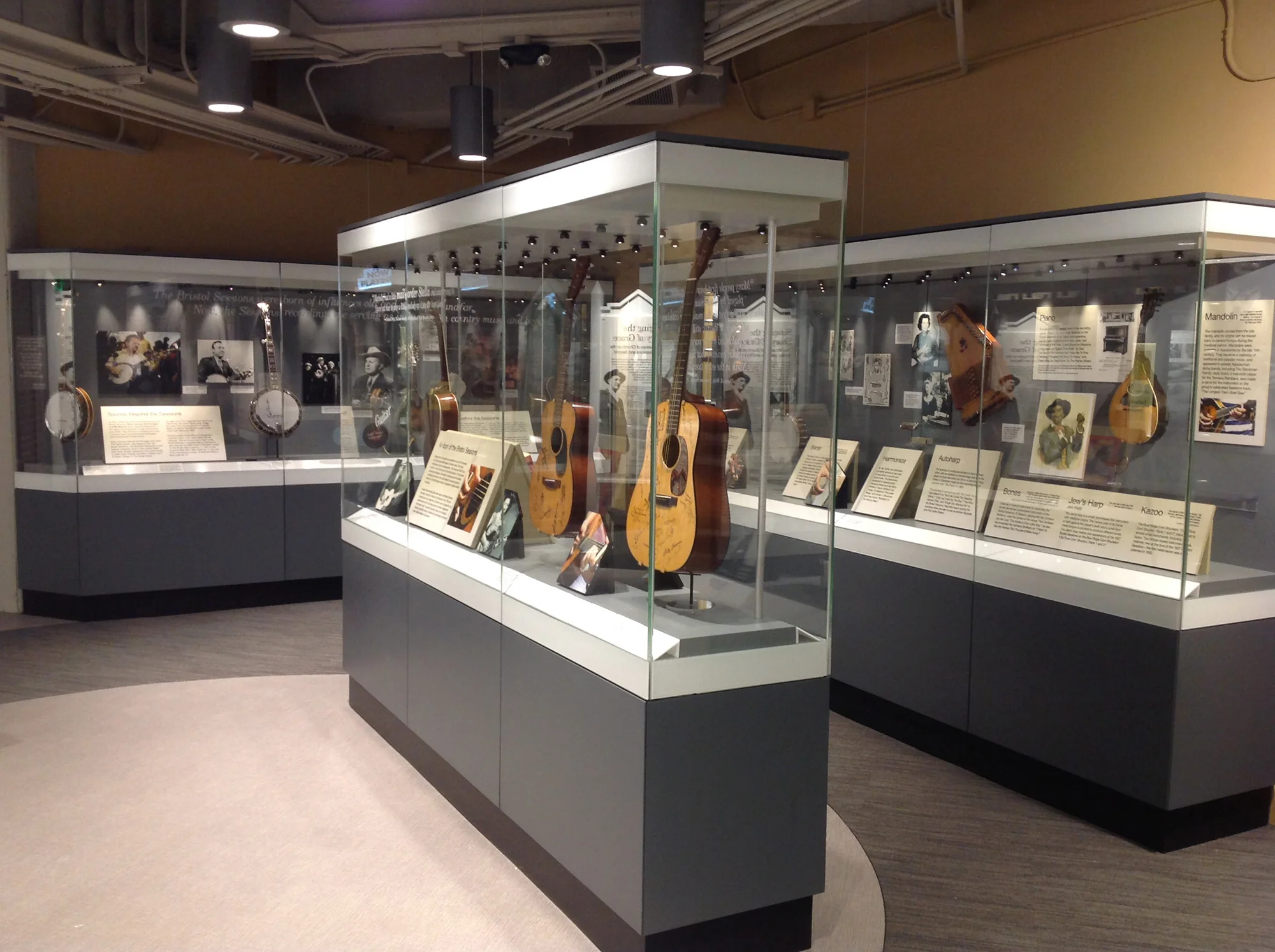 Throughout the museum, conservation practices are implemented to maintain a sustainable indoor environmental quality. Specialized acoustical engineering, microclimate humidity-controlled showcases, LED lighting, and the use of non-formaldehyde material throughout are features that aim to preserve and display the priceless instruments and artifacts from the Bristol Sessions. Other materials reconnect back with the Bristol narrative with a color palette selection drawing inspiration from American quilt-making and the use of maple, walnut and ash (species commonly used in the production of instruments) amid the museum. With its ties with the Bristol Rhythm and Roots Reunion, a three-day music festival that draws over 55,000 people annually, the Birthplace of Country Music Museum provides a permanent music museum experience that not only connects with its visitors in an immersive AV-media setting, but strengthens the regional and global influence that Bristol has on music around the world.